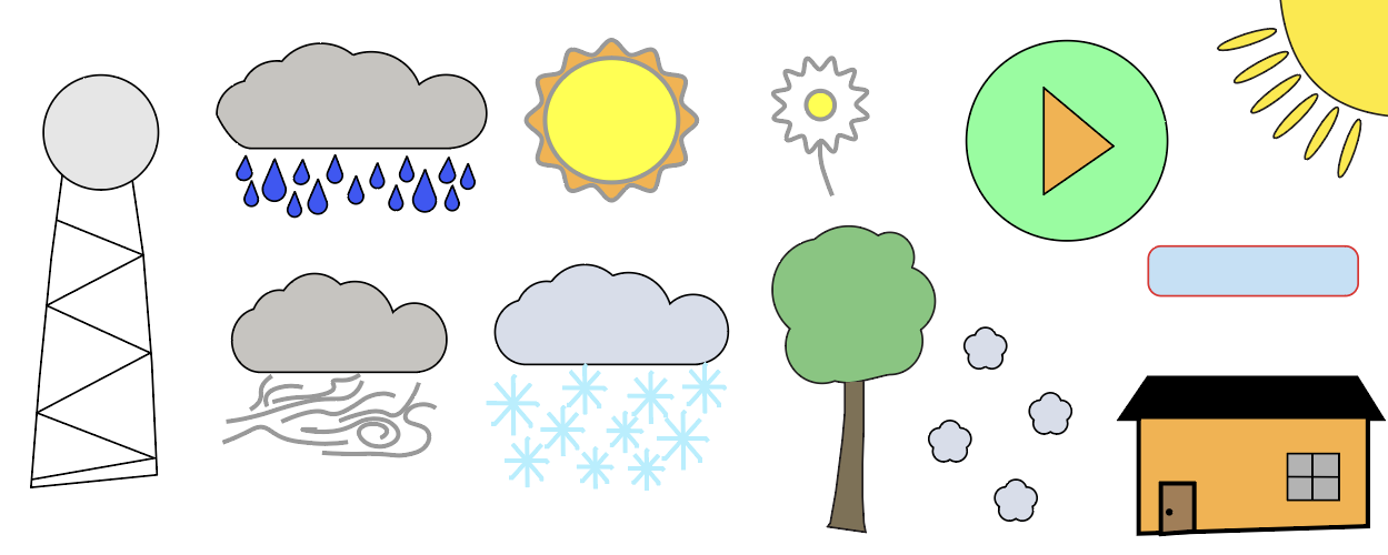 When prototyping these wireframes, I was advised to make it more appealing for my intended young audience. Where the frames of the different weather conditions are, I added a house so the weather was affecting something.